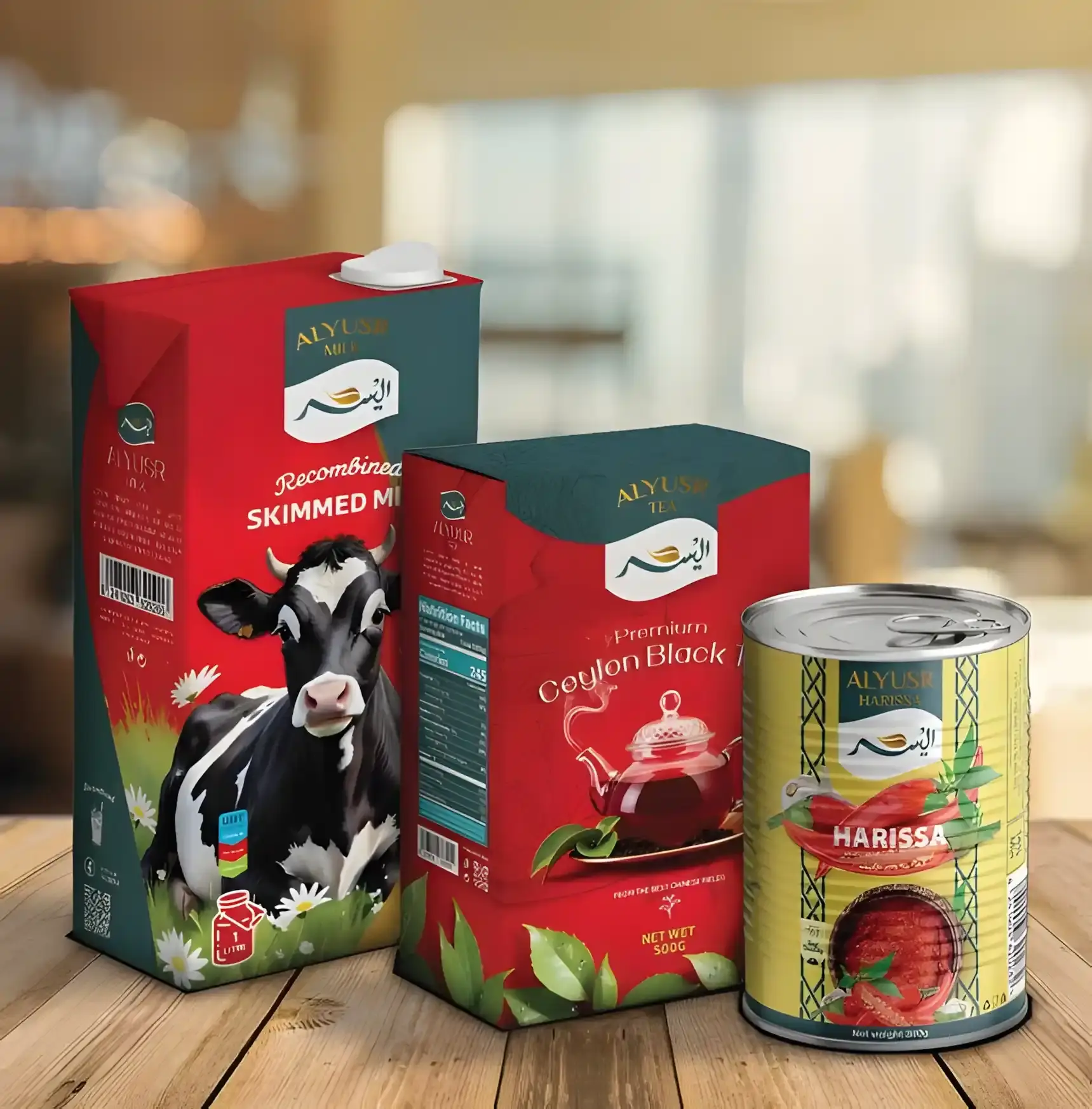 ALYUSR CO. contributes to enriching the local market with its diverse products, which include a distinctive selection of cheeses (triangular blocks, square blocks and slices), tuna, sardines, sunflower oil and red tea.